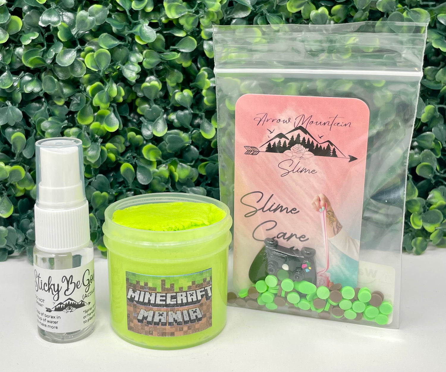 Charms: brown and green sprinkles with a game controller charm