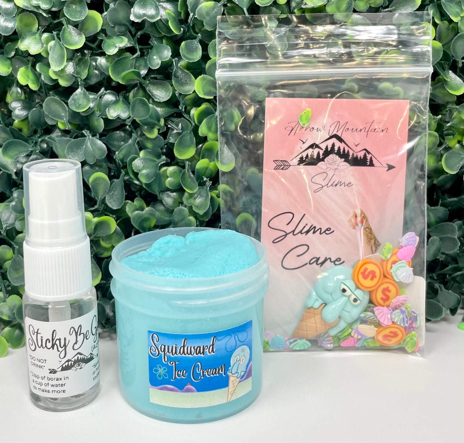 *Always wash hands and playing surface before and after playing with slime. If you have warm hands you may need to put some sticky be gone activator on your hands or the slime as heat breaks down the chemical bonds in slime causing it to turn back into glue (which is why your slime gets sticky) Please watch videos on the back of the slime care card or reach out if you have any questions*